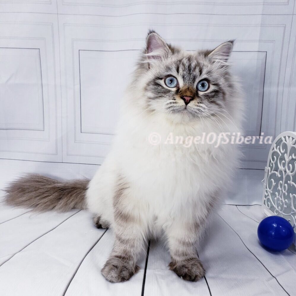 We breed hypoallergenic Traditional Forest Siberians and color pointed Siberians also called Neva Masquerade.