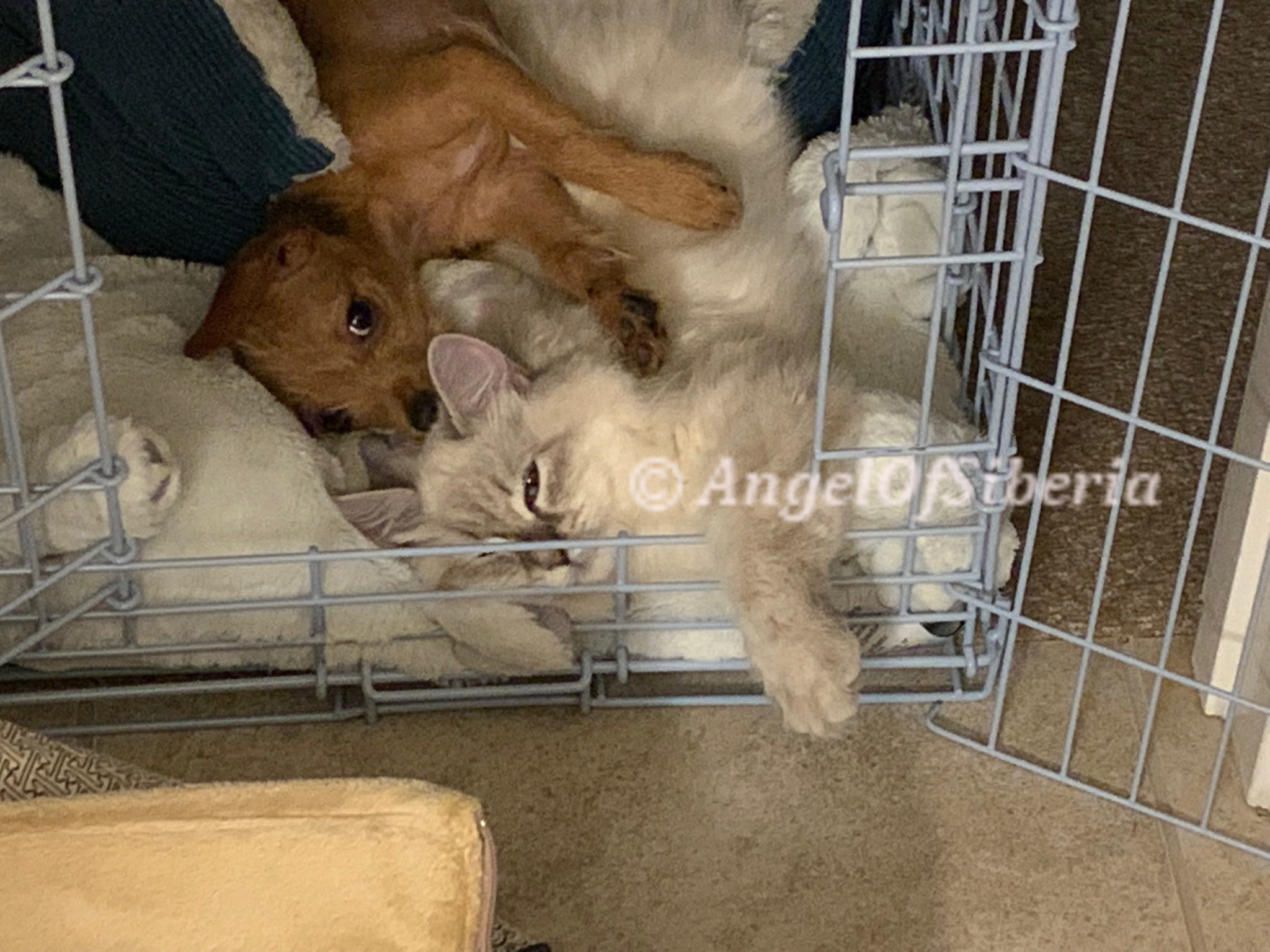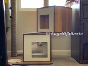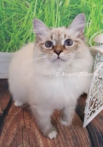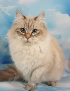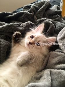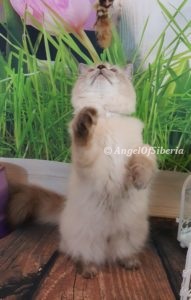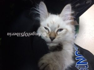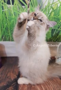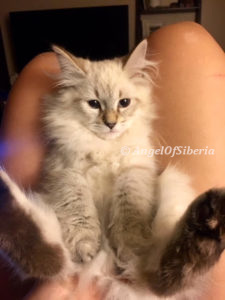 StandardHello, we adopted Amber unexpectedly when we were in the process of adopting Izzy. They are both are beautiful lynx point Siberians. We fell in love with both of our kittens right away.. It did not take them long to settle in and become part of the family. We are very happy to share our home with these beauties. They are awesome and have completely different personalities. Amber exhibits some dog like traits, she follows me around the house wherever I go. She likes to help me fold laundry and will sit in the middle of the clothes. When I come home from the store, she explores the bags. Paper bags are her favorite place to hidу white I put things away. She knows her name and comes when she is called. When I get up in the morning, shes is there to greet me at my bedroom door and joins me in the bathroom during my shower. when I come home from work, she sits by the front door waiting for me. I have to admit, it took time for my husband to convince me to get two kittens, but I never regret. Izzy is very easy going, laid back, lazy, lap cat, 15 lb by now. I admire the bushy tail and very long fluffy fur. He has a certain pattern when he wants to eat, he begs for food. I love that there is low maintenance despite the fact that they are both long haired cats.