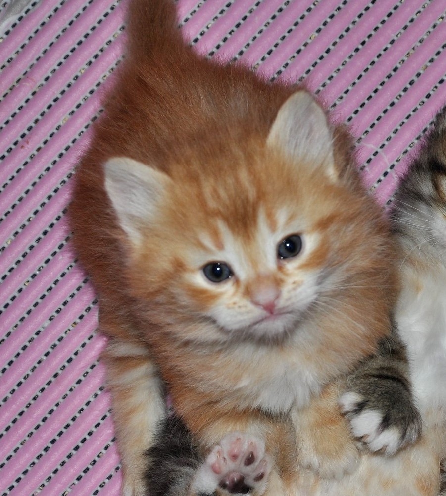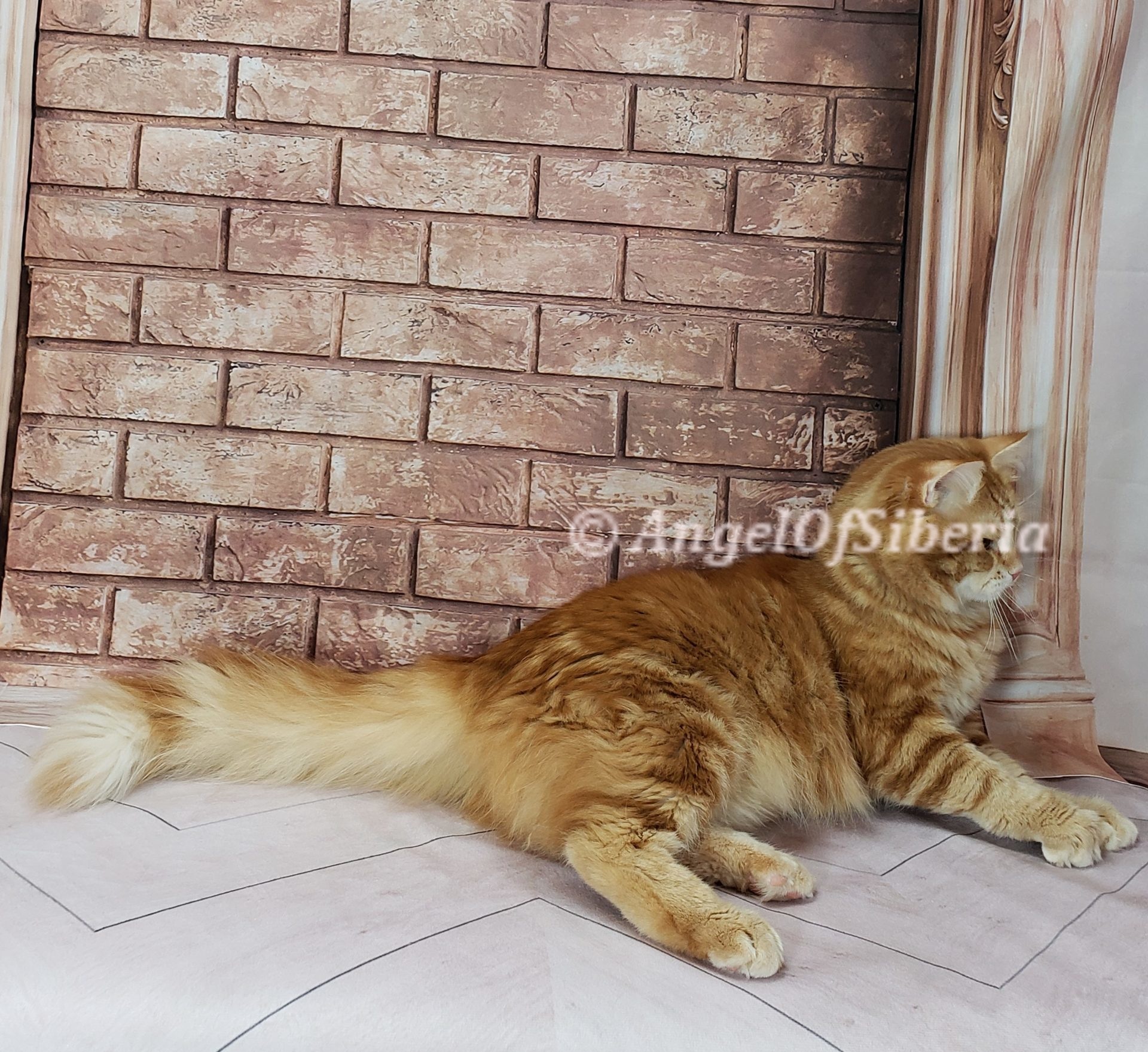 About the color: He is a golden gene carrier and a very bright red tabby. We had great looking kittens with Caramel and Fantasy Life. Most males with this king will be red or golden shaded. Females will be torbie.